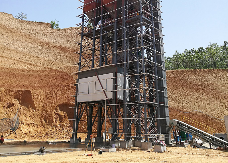 干混砂漿攪拌站分有階梯式及塔樓式兩種規格,主要由節能的混合系統、原料罐、輸送系統、提升系統、配料系統、待混系統、包裝系統、除塵系統、料位控制系統、報警系統、空壓系統、整機控制系統等構成??梢愿鶕枰优淦扑橄到y、篩分系統以及烘干系統。
